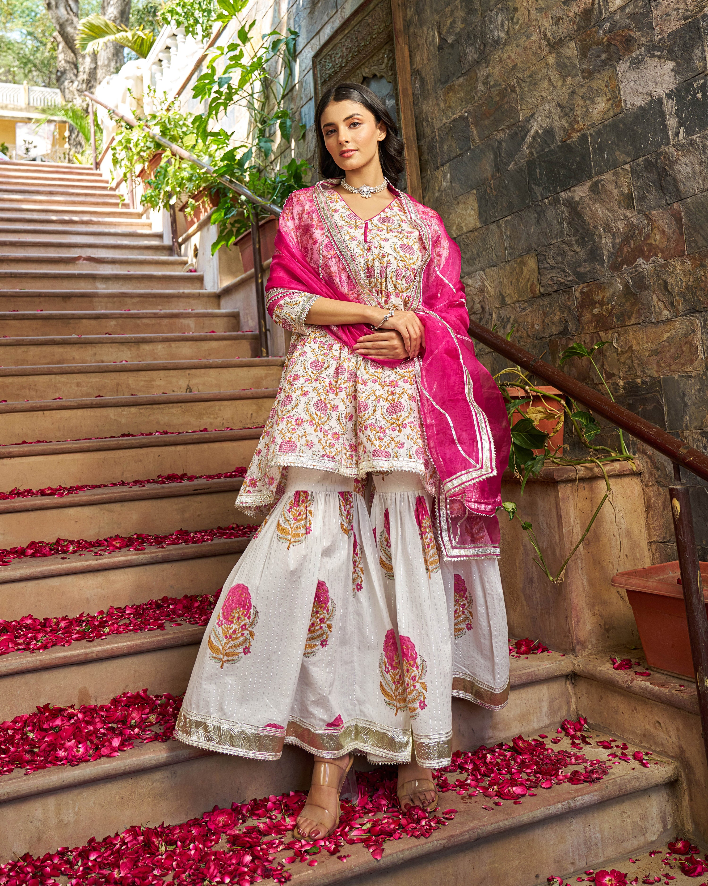 Eira Handblock Cotton Gotapatti Sharara Set – Guleri