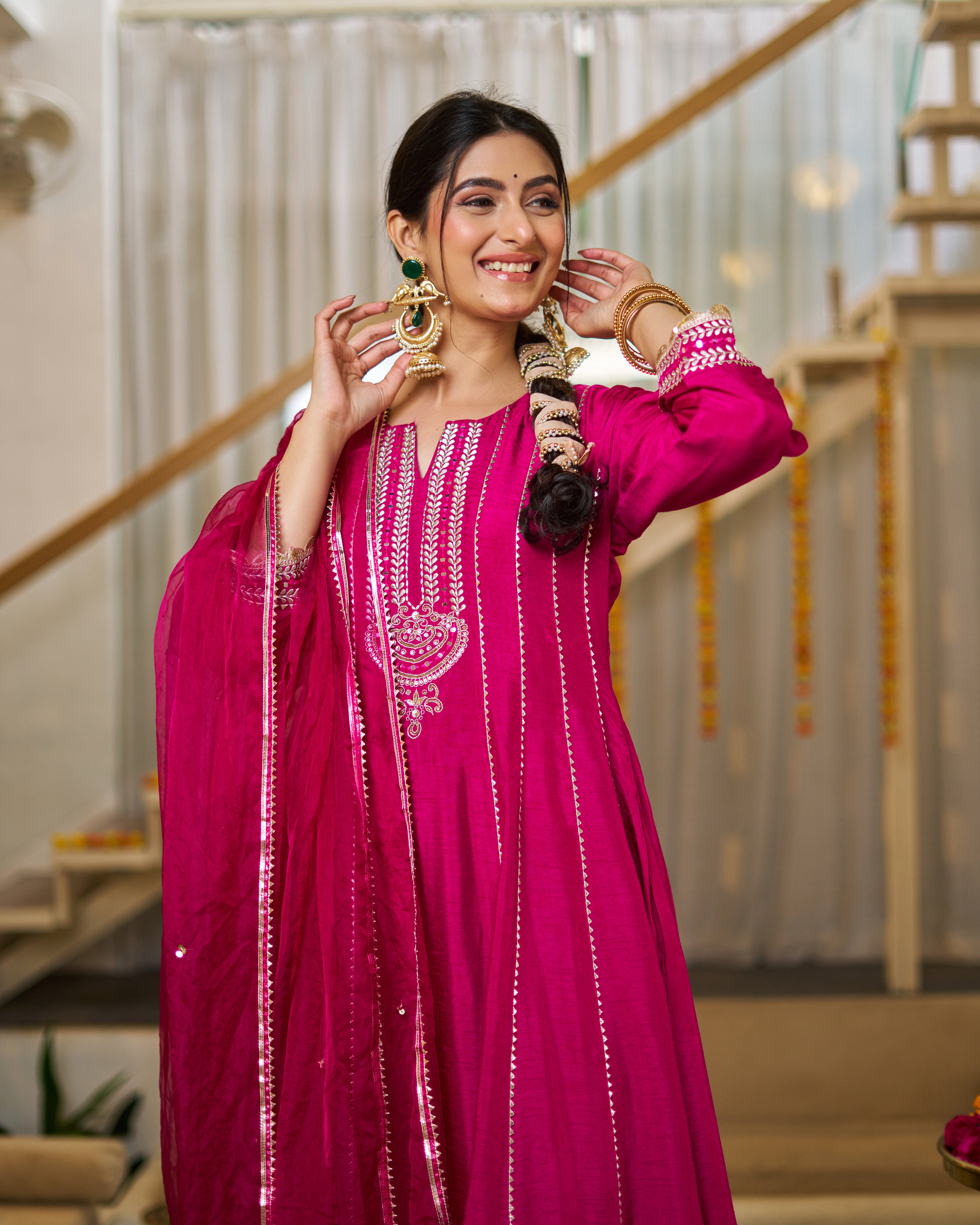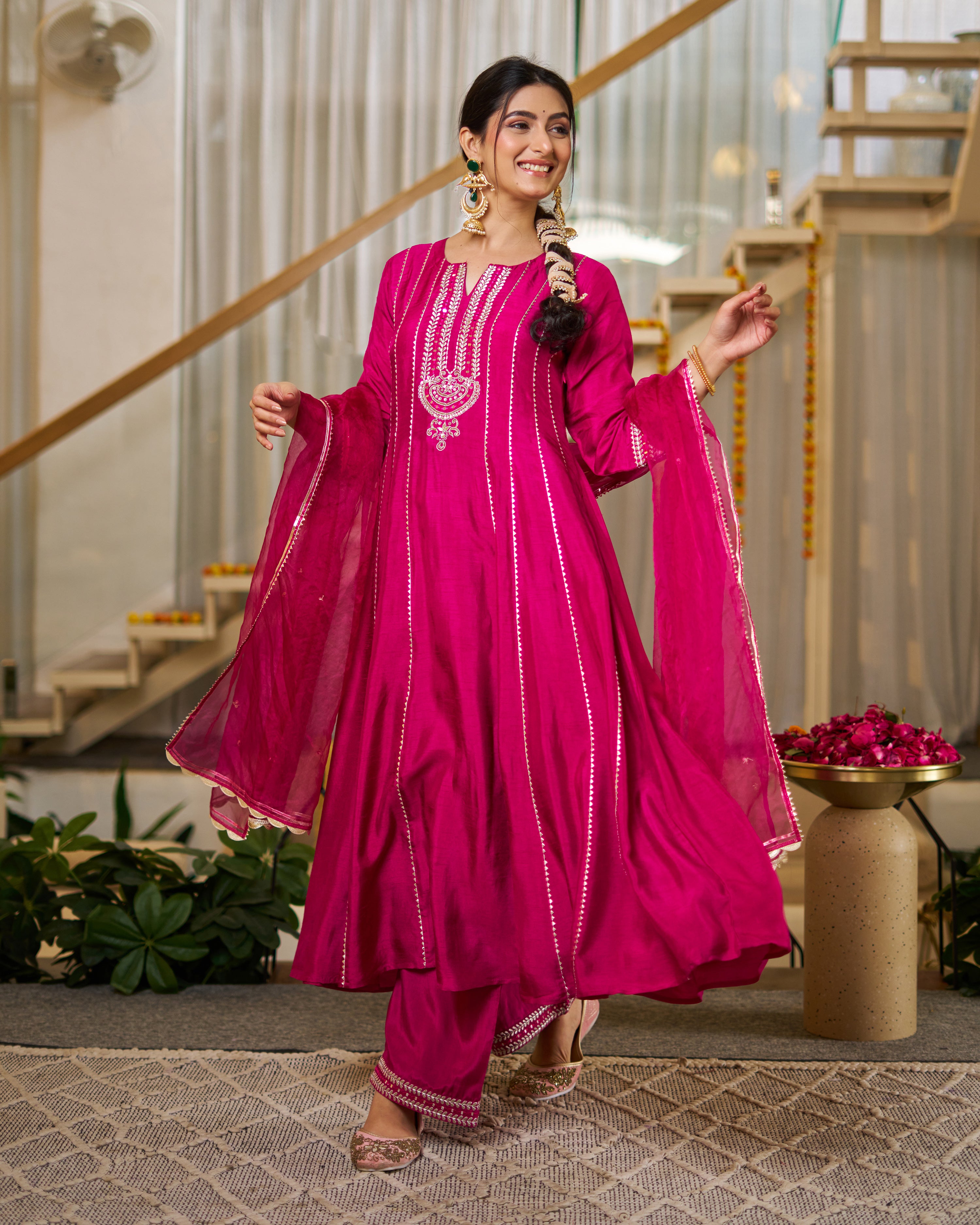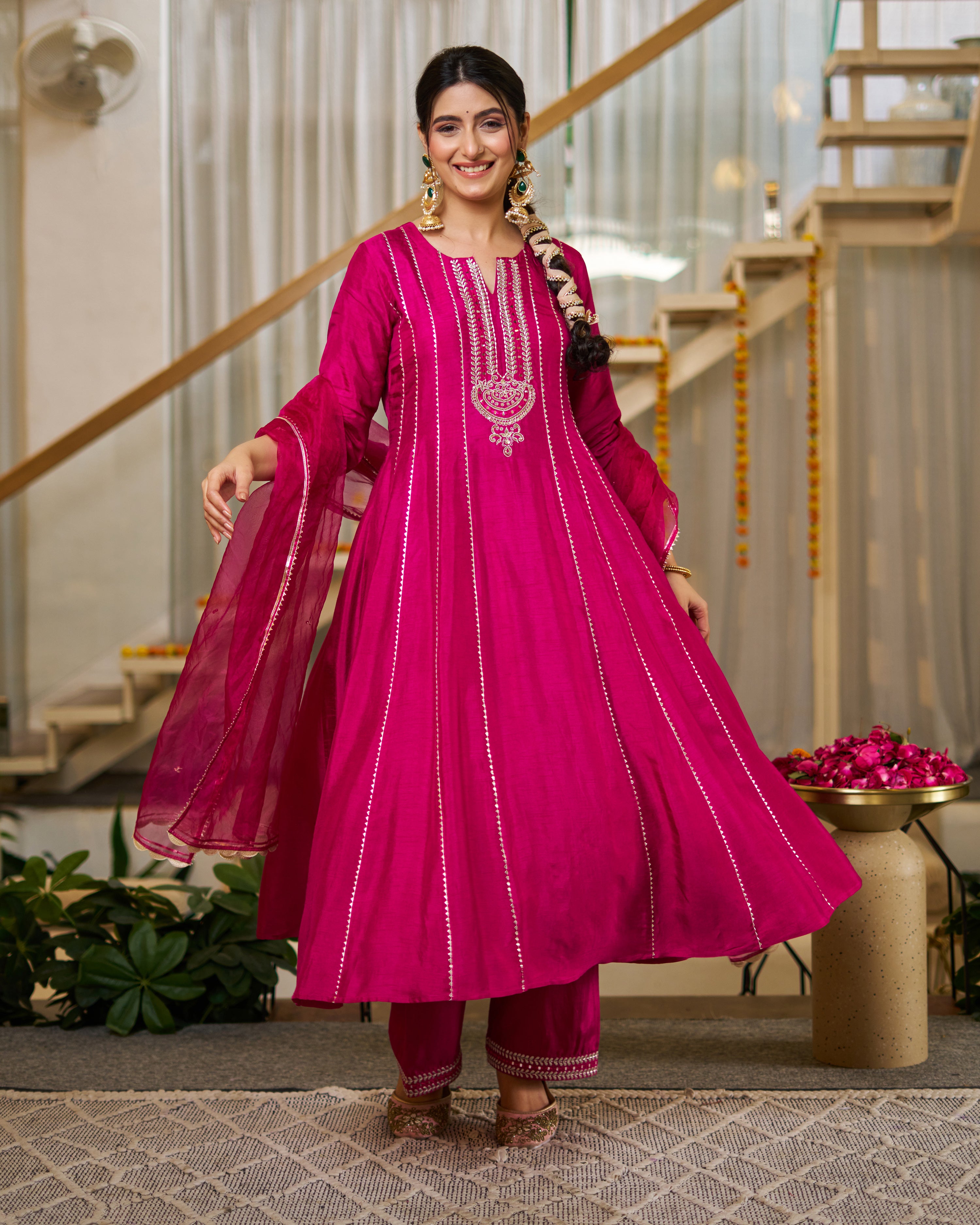 This is a Fuchsia anarkali with pant & dupatta