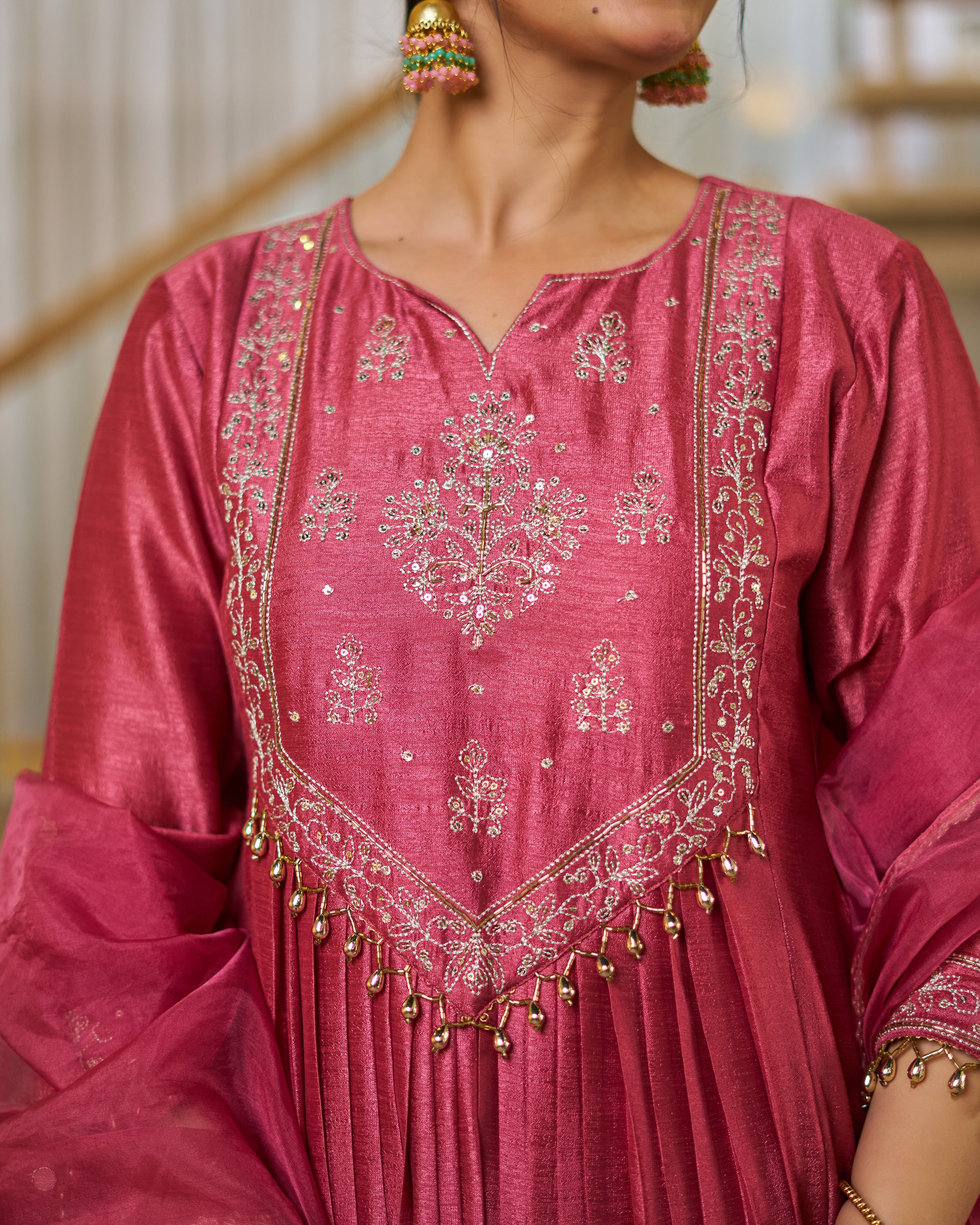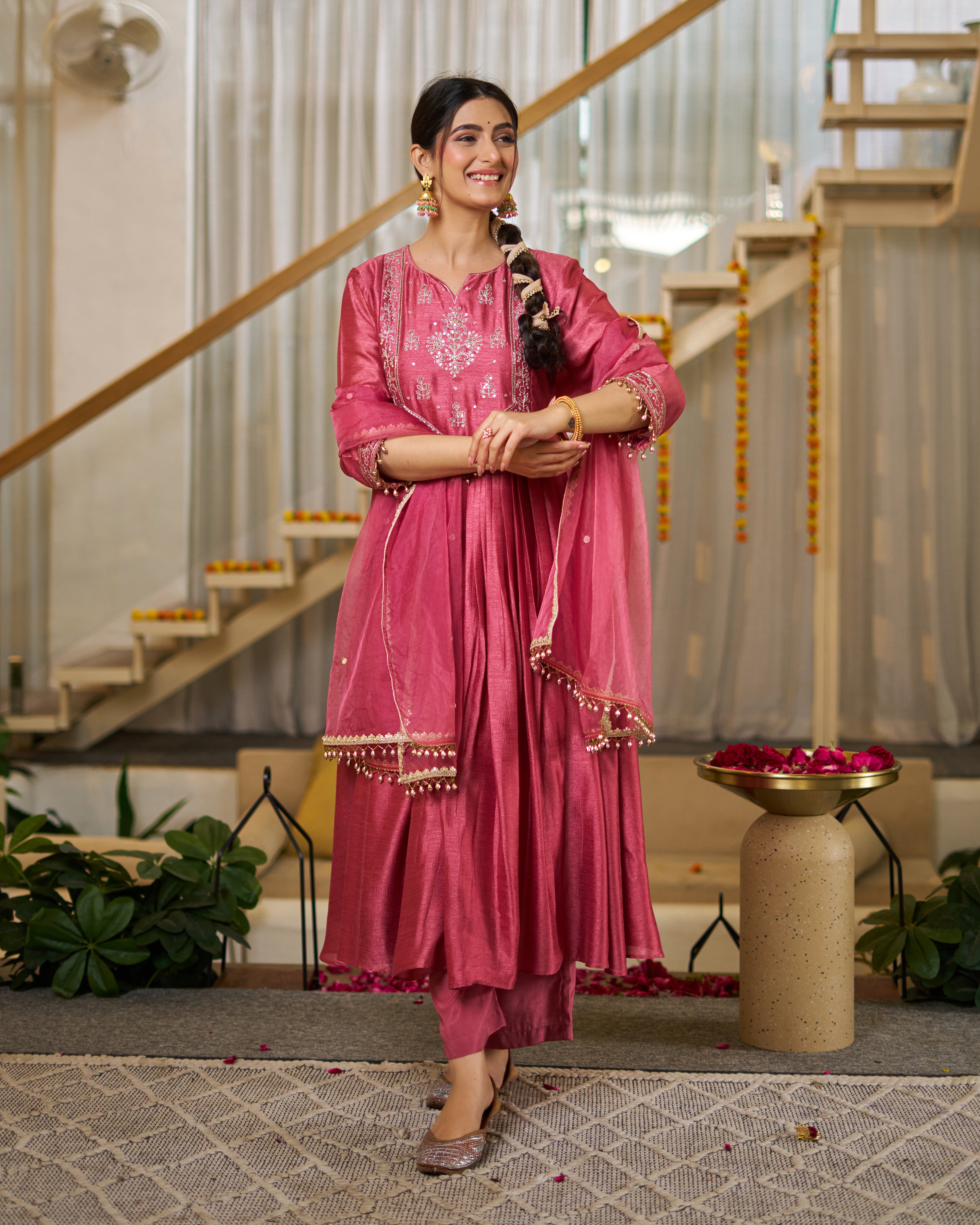 This is a Dusky pink anarkali with pant & dupatta